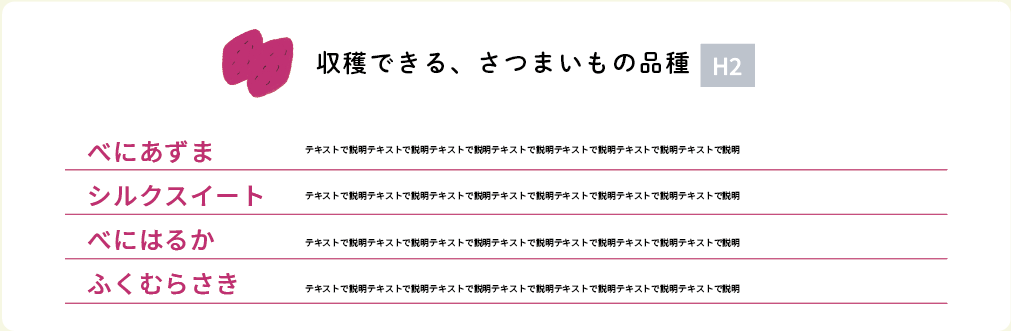 べにあずま、シルクスイート、べにはるか、ふくむらさき